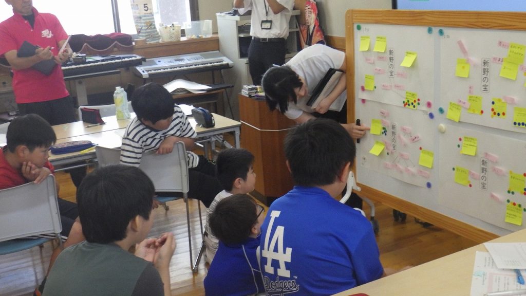 新野小学校と阿南第二中学校では、小学生と中学生が同じ授業の中で道徳を学んでいます。小学生の新鮮なひらめきに中学生が触発されたり、中学生の自分を見つめる問いかけに小学生が考えさせられたりする中で、自分の中の答えを見つけ出そうとする姿があります。